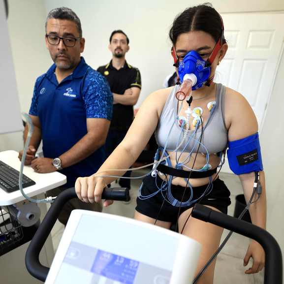 Ciclista Alejandra Martínez realizó prueba de ergoespirometría con el equipo CPET en El Polvorín