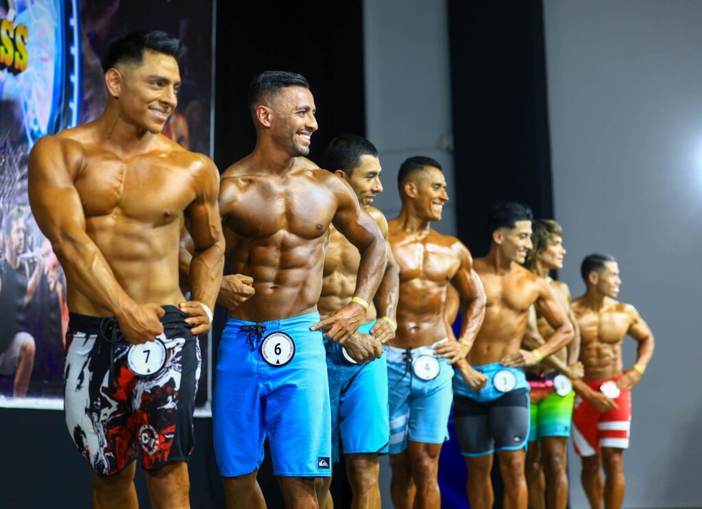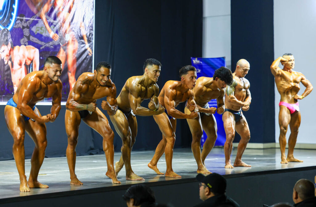 Los primeros atletas en ser llamados al escenario y mostraron su desarrollo muscular fueron los competidores de men’s physique novatos libre, categoría que ganó José Daniel Méndez, competencia en la que participaron seis fisicoculturistas.
