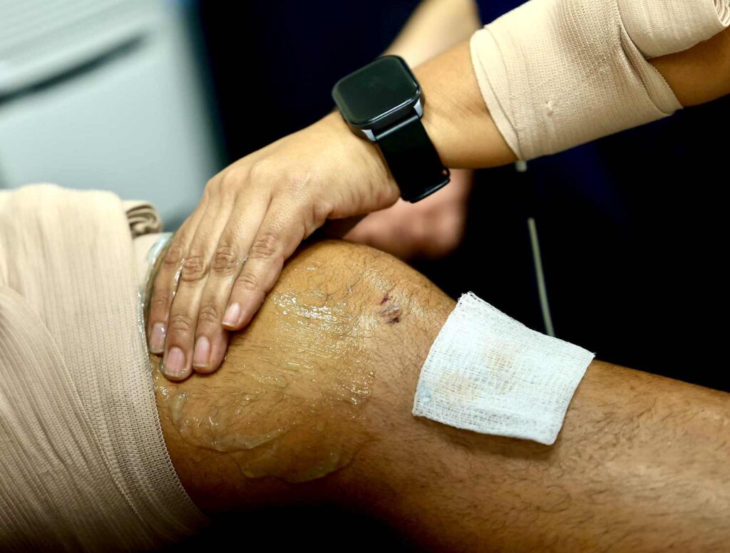 El futbolista, de 33 años, recibió esta mañana una sesión de masaje, ejercicios isométricos y microcorrientes que estuvieron a cargo de la fisioterapeuta Denisse Portillo y Bryan Fernández, jefe del área de fisioterapia.