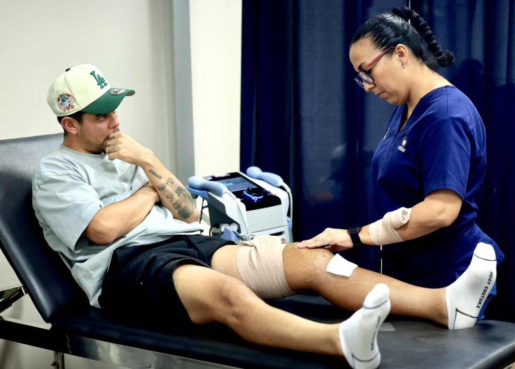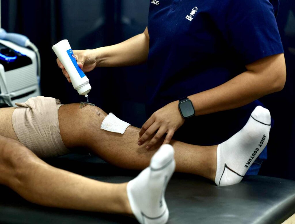 “Con Álex Larín se va a bajar la inflamación y mejorar el arco de movimiento, estimular musculatura para que empiece a activarse y no siga perdiendo masa muscular. Vamos a utilizar todo el equipo que se ha adquirido recientemente enfocado en el fortalecimiento para que en unos cuatro o cinco meses se vaya incorporando a su deporte”, comentó Denisse Portillo, fisioterapeuta del CAD.