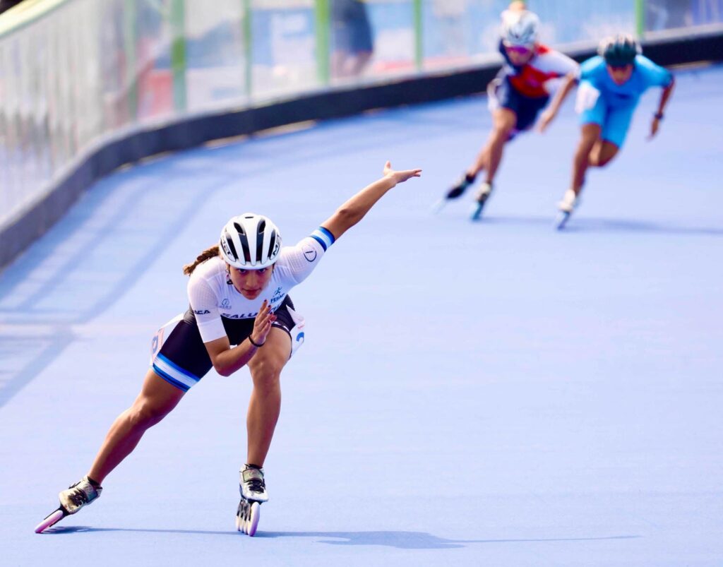 La máxima figura del patinaje salvadoreño ganó la presea plateada con tiempo de 10.699 segundos y forcejeó el oro a la colombiana Geiny Pájaro, quien registró 10.698.