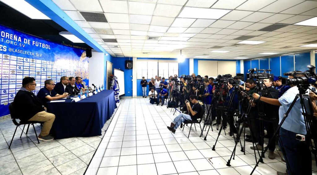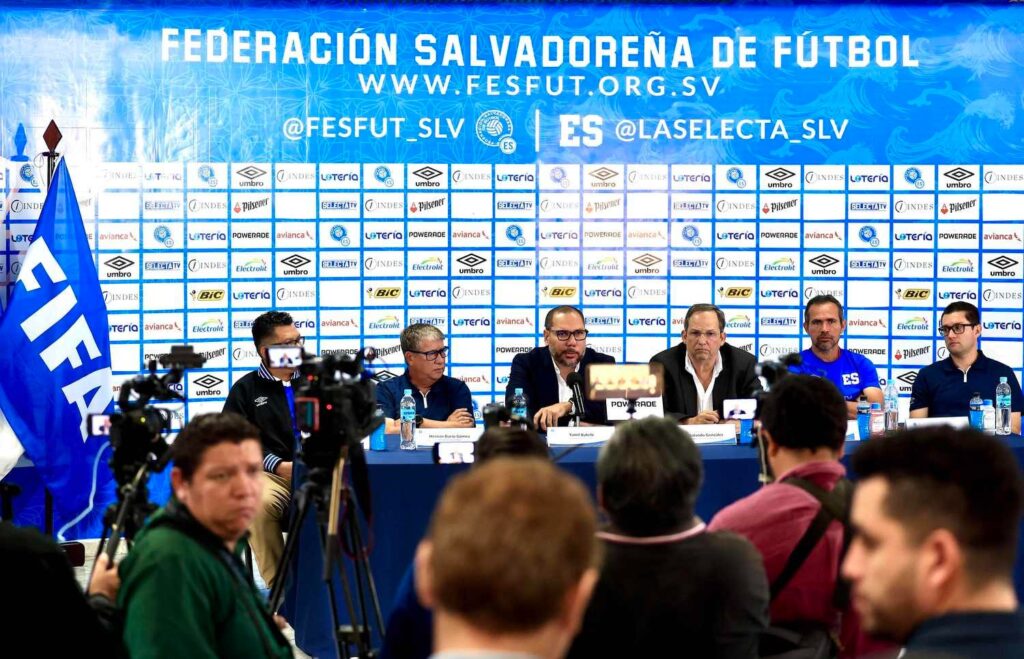 Yamil Bukele hizo el anuncio de este y otros apoyos al balompié nacional durante la conferencia de prensa conjunta con el presidente de la Comisión de Regularización de la Fesfut, Rolando González; y el cuerpo técnico de la Selecta.
