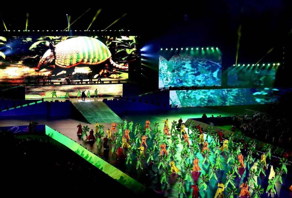 Según la organización, la producción de la ceremonia inaugural tuvo más de 700 luces, 20 sistemas láser, 600 m² de pantallas LED, mil drones que ofrecieron un show espectacular mostrando figuras tradicionales de Paraguay, y un piromusical sincronizado en 77 puntos, además de 25,000 pulseras LED para que el público fuera parte activa del evento.