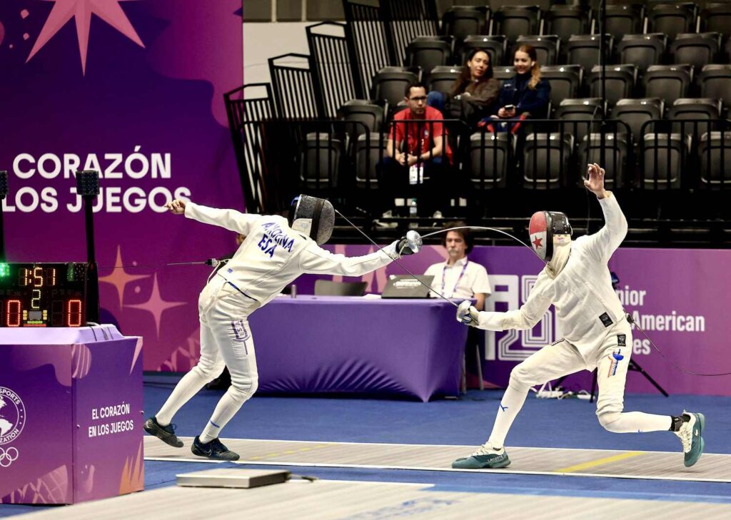 Mientras que Irene Mena, del Programa Esfuerzo y Gloria, vio acción en el florete femenino consiguió dos victorias y dos derrotas en la fase de grupos. Los triunfos fueron ante Jewel Crump, de Antillas, y Alene Okenve, de Jamaica.
