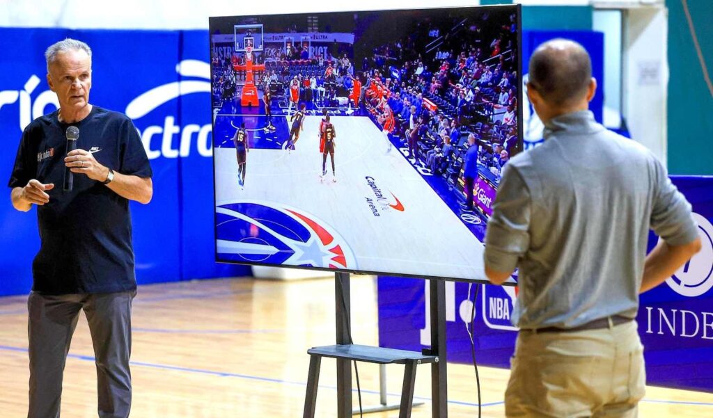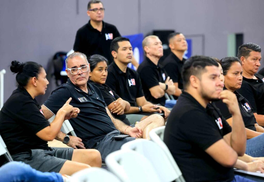 La duela principal y la cancha número 3 del Gimnasio Nacional José Adolfo Pineda volvió a ser un espacio de aprendizaje y fortalecimiento técnico con la tercera edición consecutiva de la Coaches Academy y la Clínica de Arbitraje en el marco de las actividades de la Jr. NBA 2025.