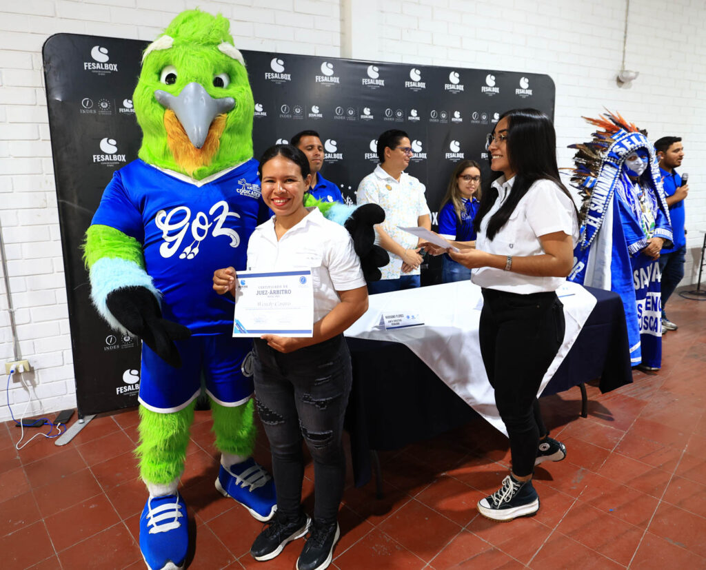 El acto se desarrolló con la presencia de la Gestora Deportiva del INDES, Tatiana Velázquez; el presidente del Comité Olímpico de El Salvador (COES), Armando Bruni; y el secretario de Junta Directiva de la Fesalbox, Mariano Flores.