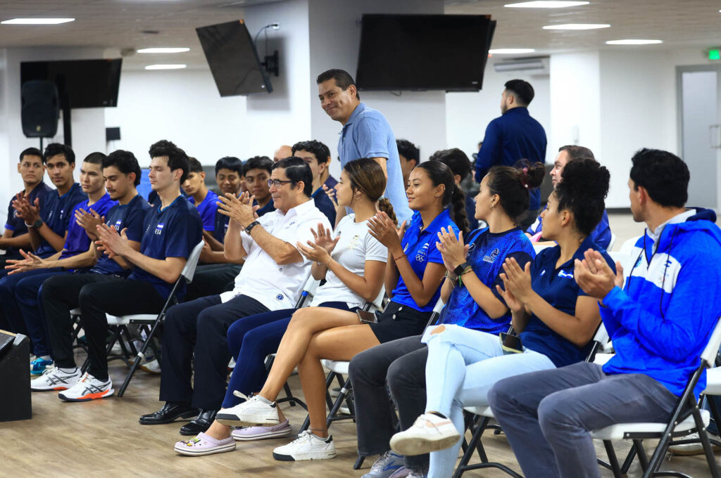 Mientras que los seleccionados nacionales de voleibol sala, categoría sub-23, Fernando Navarro, Andrés Reyes, Óscar Martínez y Abner Cano recibieron el pabellón nacional en nombre de todo el equipo de cara al VII Campeonato Centroamericano.