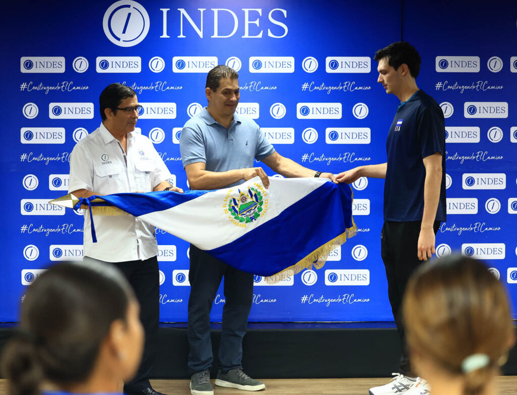 En un acto protocolario, ambas selecciones recibieron el pabellón nacional de manos de Juan José Gómez, gerente administrativo del INDES, y de Antonio Flamenco, vicepresidente de la Federación Salvadoreña de Voleibol (Fesavol).