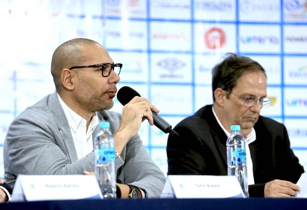 Con el propósito de garantizar un desarrollo ordenado, seguro y eficiente de los partidos eliminatorios rumbo a la Copa del Mundo 2026 se presentó esta mañana el Plan Integral de Seguridad. La conferencia contó con la participación de Yamil Bukele, presidente ad honórem del INDES; Rolando González, presidente de la Comisión de Regularización de la FESFUT; Roberto Batista, presidente de la Comisión de Seguridad; y Mario Iraheta, coordinador general de juegos.