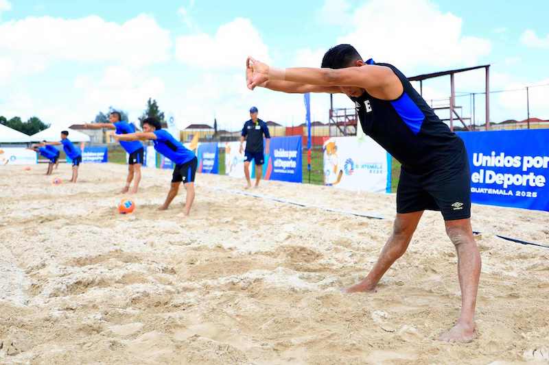 La Selecta de Playa, beneficiaria del Programa Esfuerzo y Gloria, realizó el reconocimiento de cancha en el Complejo Deportivo Greenfield, sede del fútbol playa en los XII Juegos Centroamericanos Guatemala 2025.