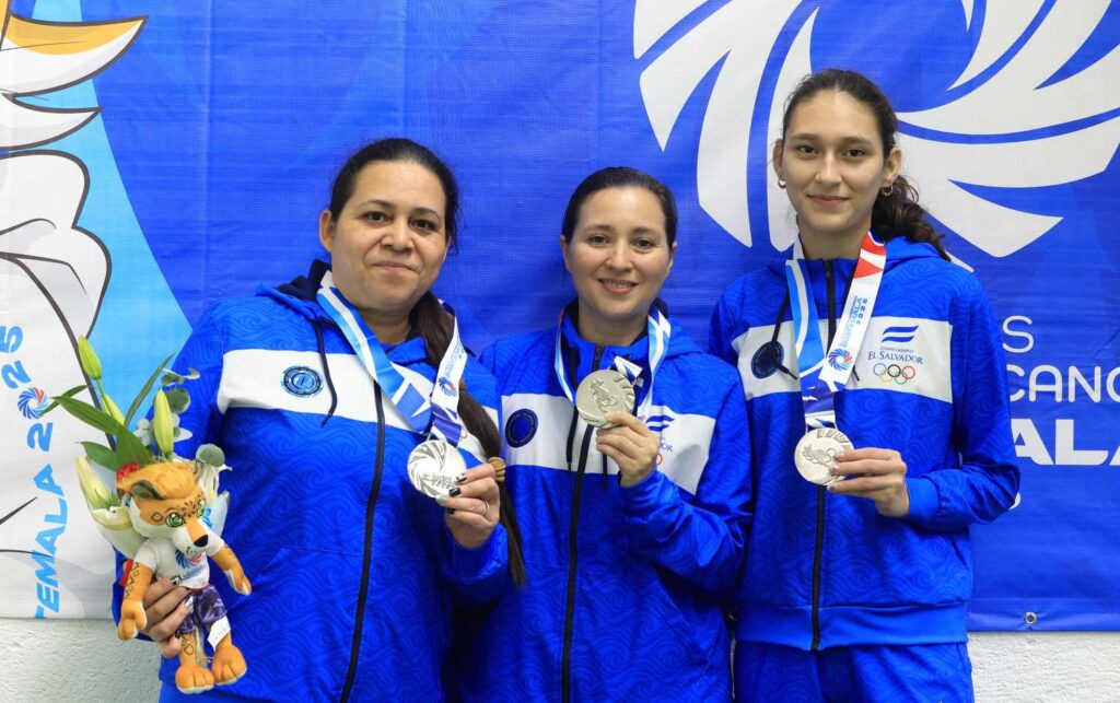 Por su parte, la medalla de plata por equipos femenino fue obtenida gracias a una puntuación de 1,786.9 puntos por parte de Johanna Pineda, beneficiaria del Programa Esfuerzo y Gloria, junto a Natalia Guardado y Verónica Rivas. El primer lugar fue para Guatemala (1,860.8 puntos) y el tercero para Nicaragua (1,772.2).