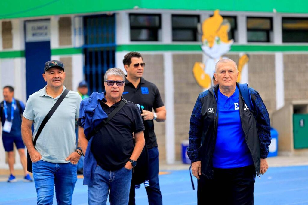 El colombiano Hernán Darío Gómez, director técnico de la Selecta mayor, junto a su cuerpo técnico, asistieron al Estadio Cementos Progreso para presenciar el encuentro.