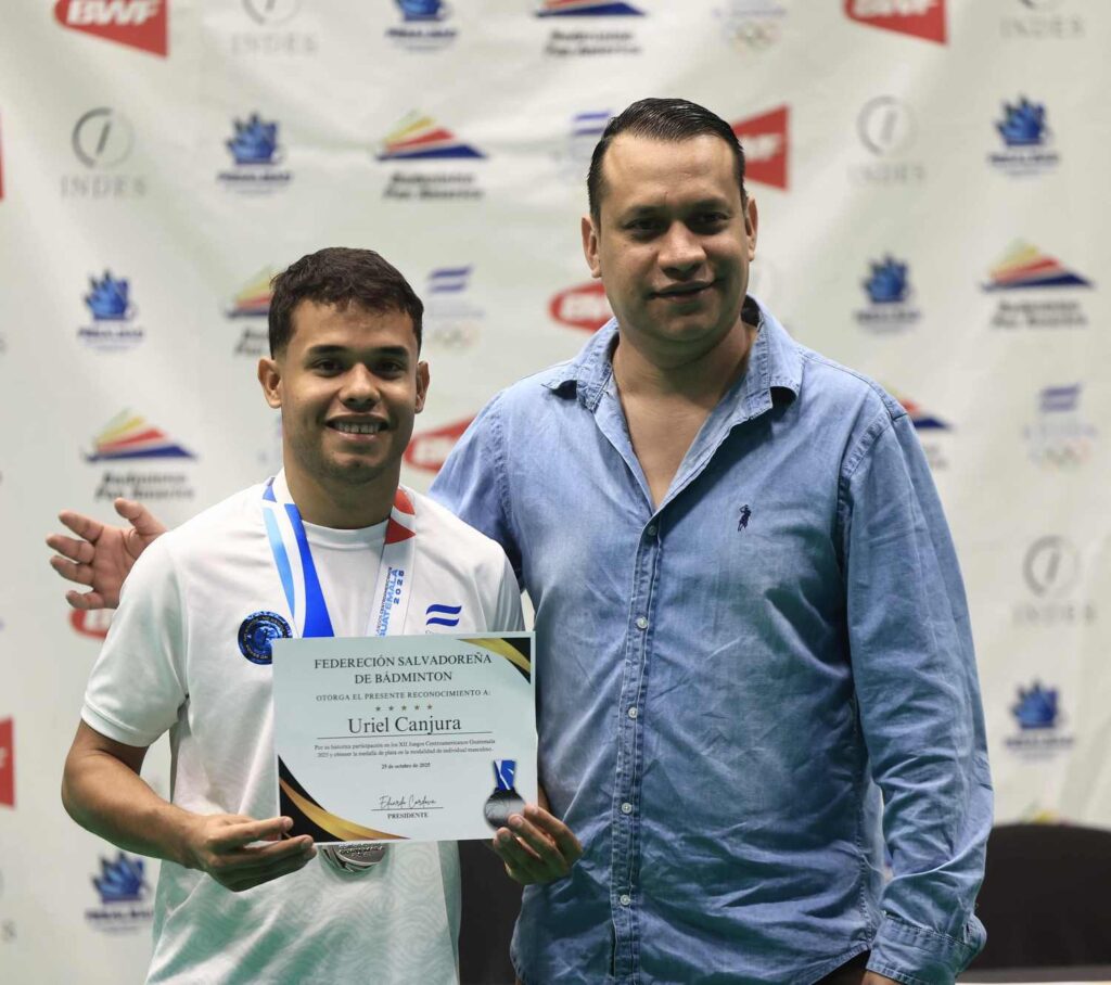 Los medallistas de los Juegos Centroamericanos Guatemala 2025, encabezados por Uriel Canjura, subcampeón individual, fueron recibidos con aplausos por el éxito alcanzado en la justa regional.