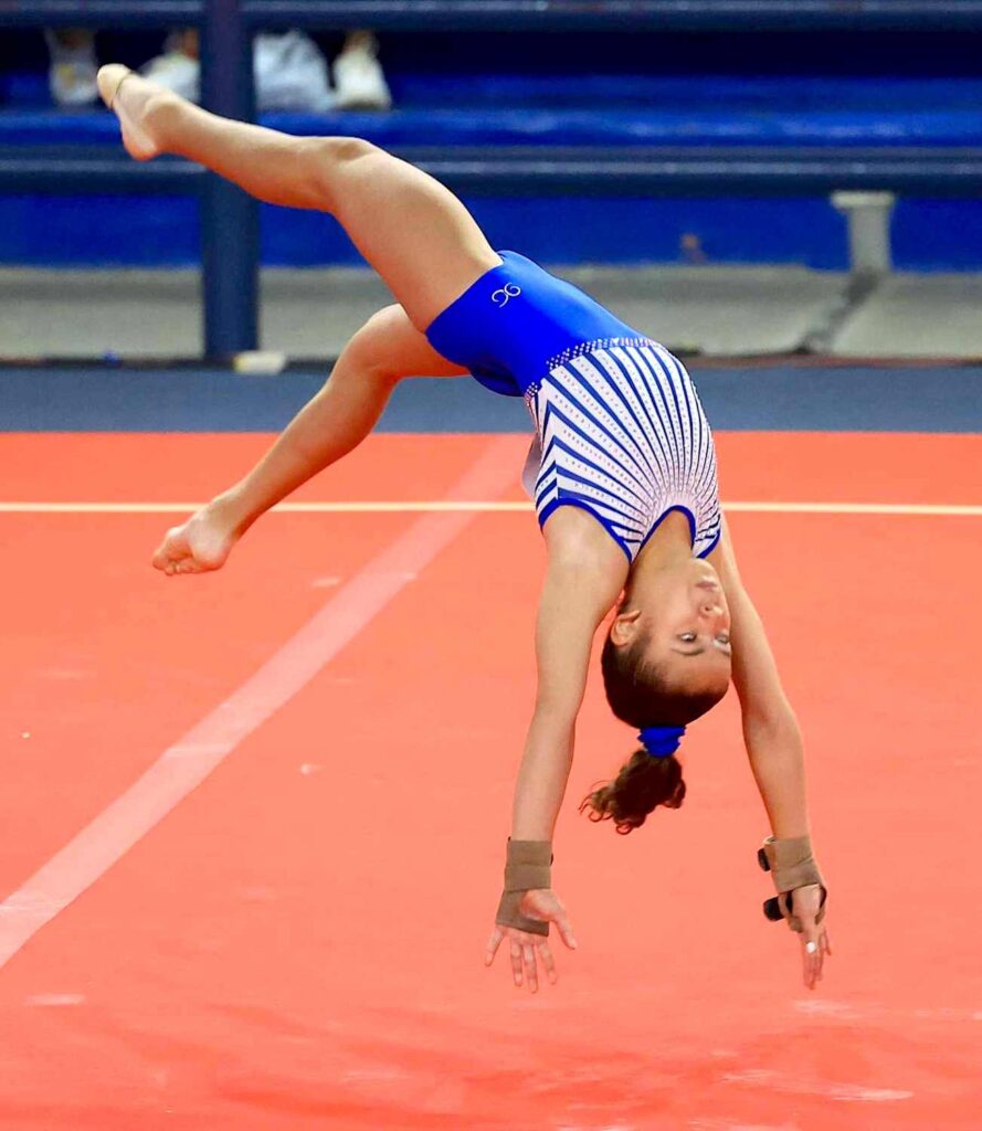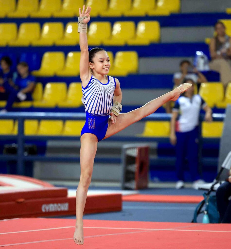 En la rama femenina, Andrea Sofía del Valle obtuvo calificación de 12.150 en la final de suelo, categoría UP 11-12 años, y conquistó la segunda medalla de oro de la jornada matutina.