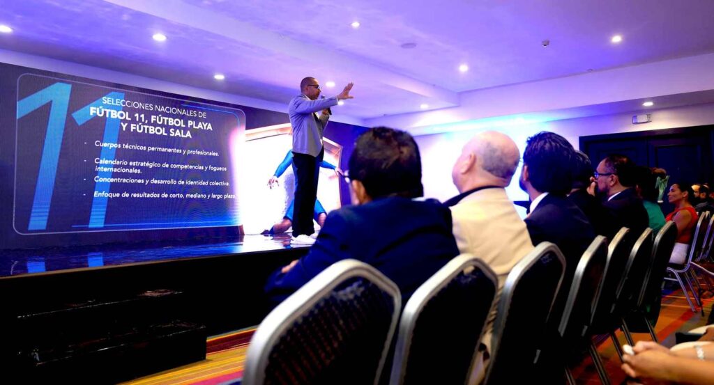 6- Base y Formación de Talento: este eje busca fortalecer a las Adfas, clubes, escuelas y academias formativas en todo el país. Además, contempla la creación de ligas departamentales sub-13, sub-15 y sub-17; la presencia en los Juegos Estudiantiles, el impulso de la Liga Estudiantil de Fútbol y el desarrollo del Torneo Nacional de Adfas en las categorías sub-13, sub-15 y sub-17.