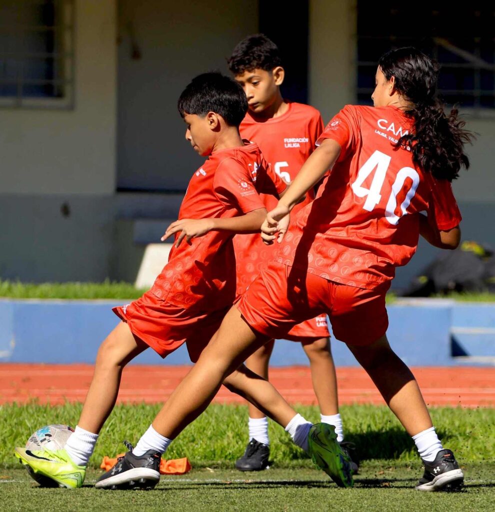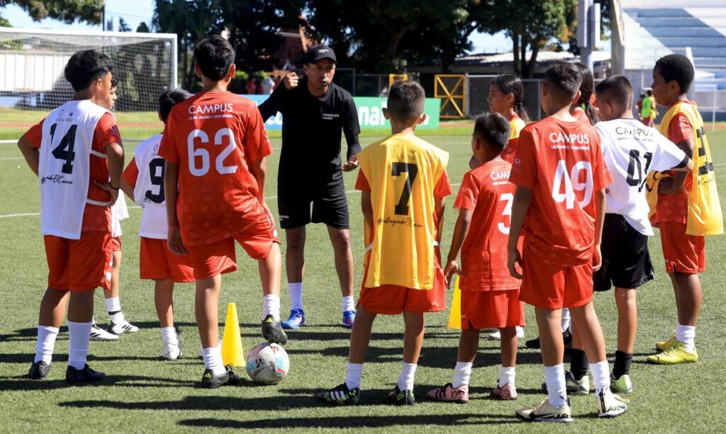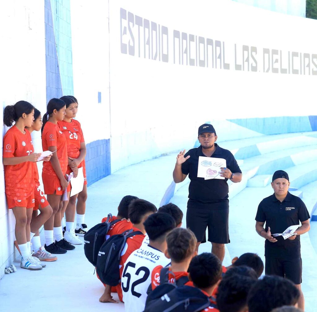 El Campus Nacional del Programa LaLiga, Valores y Oportunidad no solo es un espacio para que los niños fortalezcan sus técnicas de fútbol y fundamentos básicos como defensa y ataque, sino que también incluye talleres y lecciones formativas. Este jueves, los 120 niños de la zona occidental y paracentral que participan en el programa impulsado por INDES, con el apoyo de Fundación LaLiga, recibieron un taller sobre nutrición.
