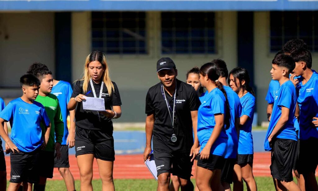 Leipzigndell Francheska Rivera es parte del grupo de 10 monitores que apoyan el trabajo deportivo con los niños de la zona central y oriental del país en el Campus Nacional LaLiga, Valores y Oportunidad, que organiza el INDES con el apoyo de la Fundación LaLiga, en el Estadio Nacional Las Delicias.