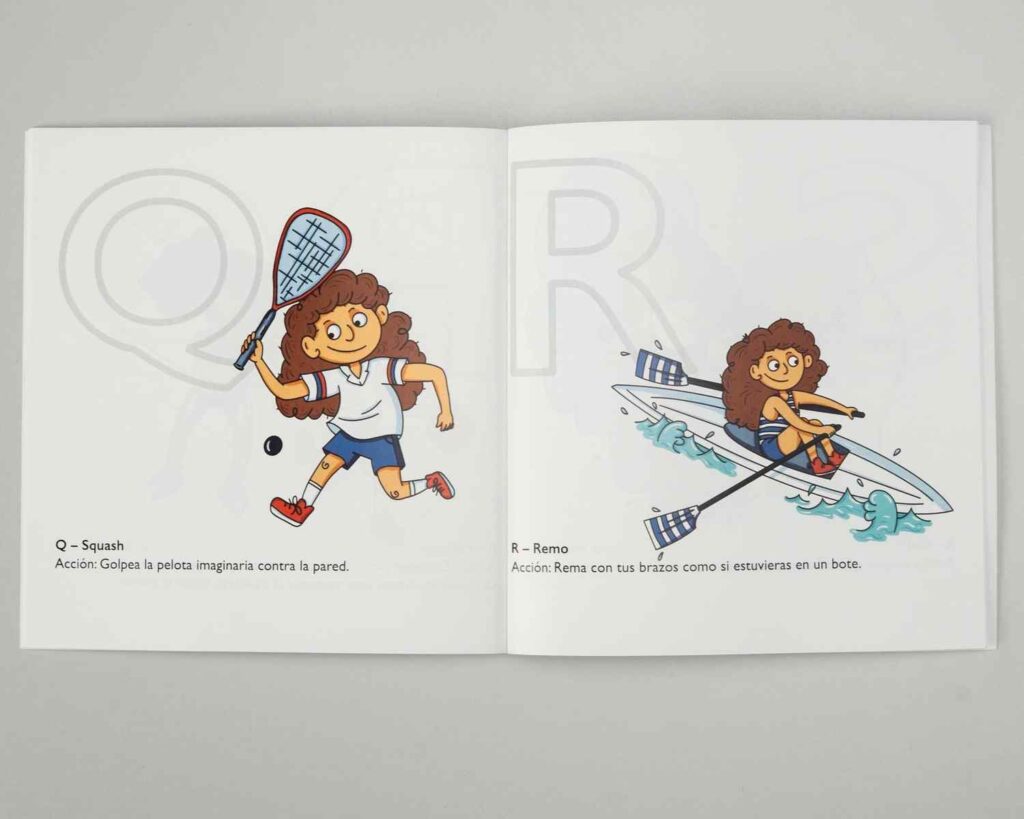 Otro de los libros está enfocado en el desarrollo de la motricidad fina y gruesa, utilizando el juego como eje central para presentar distintos deportes. Esta propuesta busca ampliar el panorama deportivo desde edades tempranas, mostrando que existen múltiples disciplinas y que cada niño puede descubrir, sin estereotipos, qué actividad disfruta y qué lo motiva.