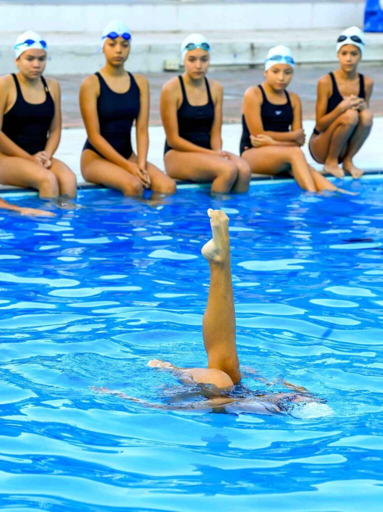 “En cuanto a 12 años y menos y 13-15 hacen figuras de su categoría más dos híbridas que son movimientos de pierna; hay una puntuación para ese movimiento que ellas realizan y se evalúa”, dijo Jenny Velis, entrenadora de natación artística.