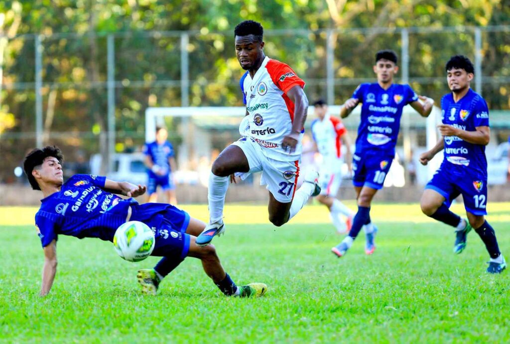 Kevin López, delantero de Sensunte, le quemó las manos al portero Jeremy Rodríguez con un disparo que se perfilaba al ángulo.