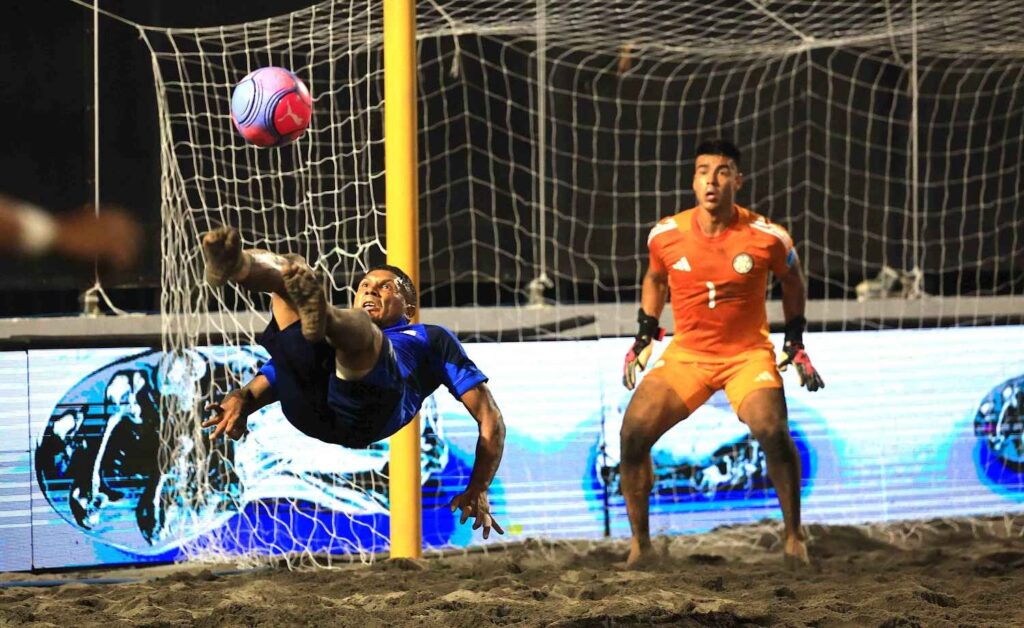También logró triplete, Emerson Cerna con goles clave para sentenciar el juego ante los cafeteros, que en este mismo escenario se coronaron campeones del fútbol playa en los Juegos Centroamericanos y del Caribe San Salvador 2023, tras vencer a la azul y blanco.