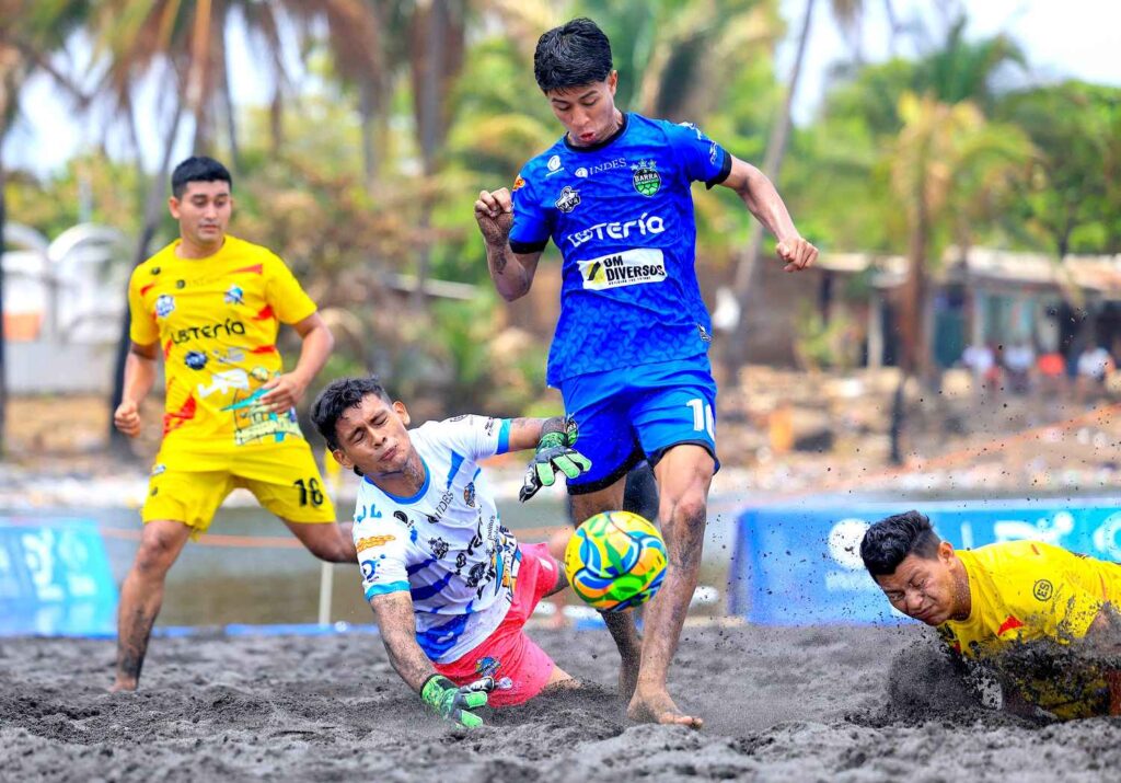 El grupo A masculino quedó parejo al final de la jornada de la Liga de Fútbol Playa Copa INDES 2026, que se jugó en la playa Barra Ciega, Sonsonate, ubicando a San Marcelino en el primer lugar y a poca distancia a Apulo Ilopango.