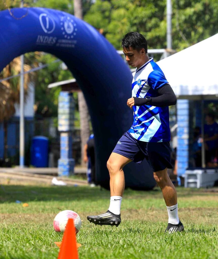 Los participantes, provenientes de San Miguel, Morazán, Usulután y La Unión, se sometieron a diferentes pruebas técnicas que incluyeron dominio de balón, precisión en el pase, control orientado, remates y ejercicios de coordinación, como parte del proceso para optar a una beca dentro del programa.